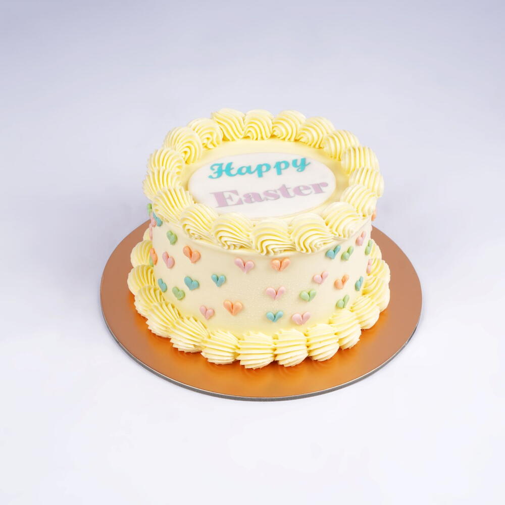Отпразднуйте сладость Пасхи с этим великолепно приготовленным тортом «Красный бархат», украшенным нежными кремовыми завитками пастельных оттенков и изящной посыпкой в виде сердечек. Богатая бархатистая текстура в сочетании с гладким кремом создает идеально сбалансированное наслаждение. Завершает композицию радостная надпись «Счастливой Пасхи», и этот торт станет прекрасным украшением праздничного стола, даря радость, любовь и восхитительные моменты с каждым кусочком.