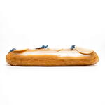 Eclair: water, milk, sugar, salt, butter, flour, egg Cream: Cream 35%, sugar, egg yolk, gelatin mass, salt