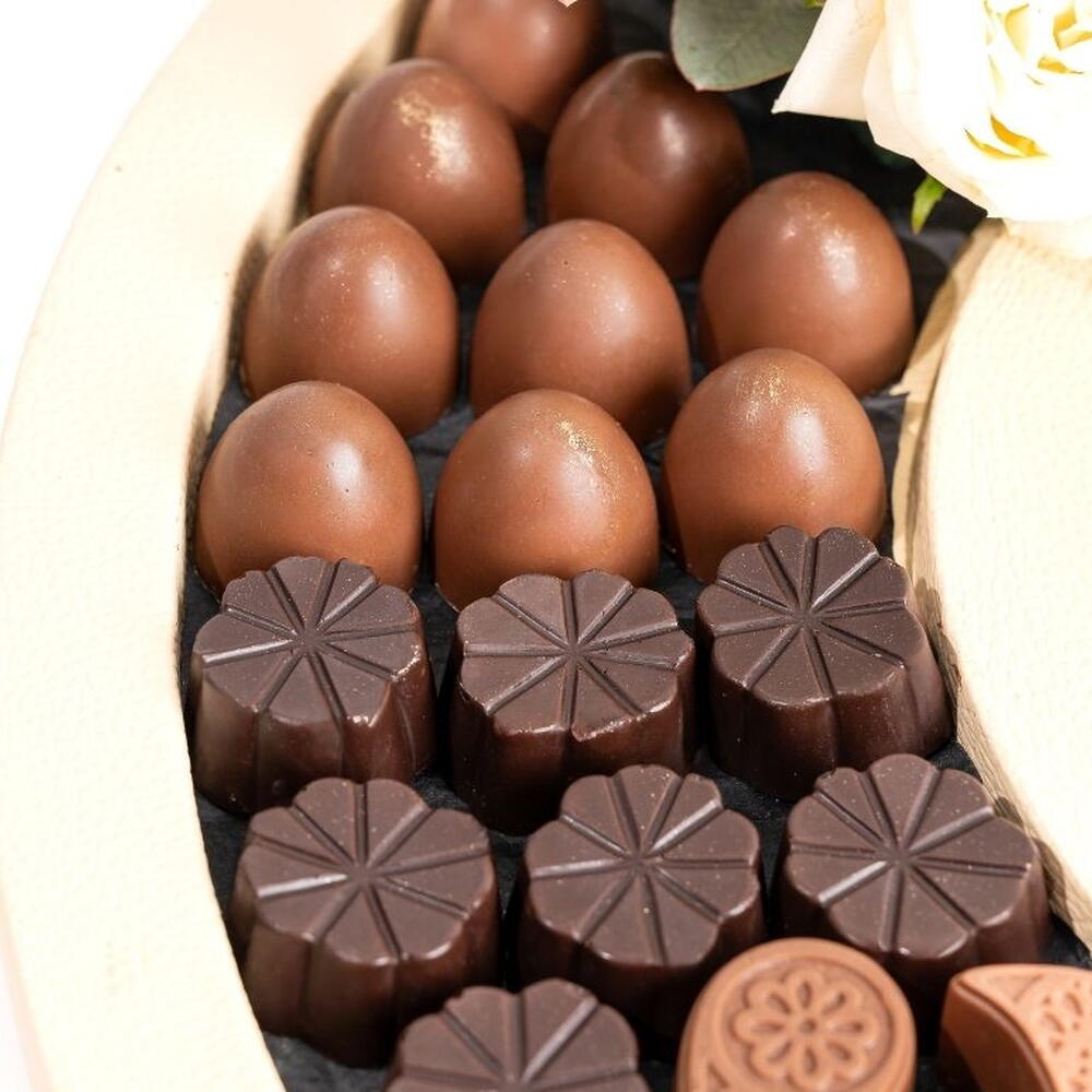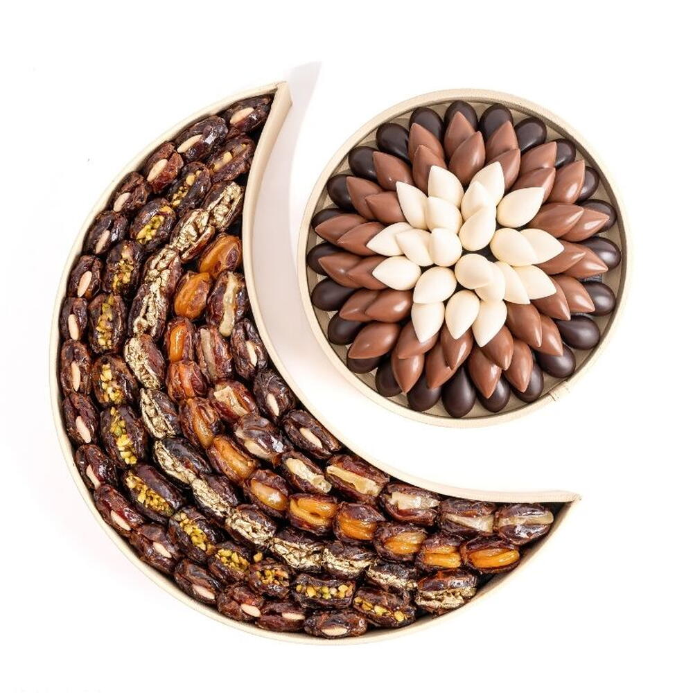 9 x Финики фаршированные сушёным ананасом 12 x Финики фаршированные абрикосом 13 x Финики фаршированные грецким орехом 13 x Финики фаршированные фисташками 19 x Финики фаршированные миндалём 21 x Ассорти белого шоколада 34 x Ассорти молочного шоколада 41 x Ассорти тёмного шоколада