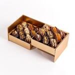 4 финика, фаршированных кешью 4 финика, фаршированных фисташками 4 финика, фаршированных абрикосами 6 фиников, фаршированных грецкими орехами Изысканное воплощение традиций, коллекция фаршированных фиников Eid Grand Reserve создана для изысканных подарков на Рамадан и Ид. Представленный в элегантной коробке, этот щедрый набор включает восемнадцать фиников премиум-класса, тщательно наполненных кешью, фисташками, абрикосами и грецкими орехами. Каждый финик подчеркивает естественную глубину вкуса тщательно отобранных фиников в сочетании с изысканными начинками, обеспечивающими баланс, текстуру и сдержанную насыщенность. Созданная для корпоративных подарков руководителям, больших праздничных корзин и оптовых заказов на Ид, эта коллекция отражает щедрость благодаря масштабу, мастерству и минималистичной роскоши, что делает ее центральным подарком для значимых событий.