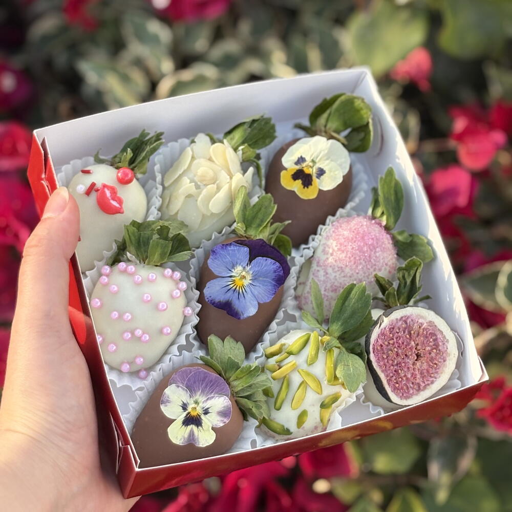 Наш самый продаваемый подарок на День святого Валентина в Дубае! Идеальное сочетание элегантности, вкуса и романтики, полюбившееся сотням довольных клиентов. Свежая, собранная вручную клубника в бельгийском шоколаде премиум-класса, аккуратно упакованная в роскошную подарочную коробку, чтобы ваш любимый человек почувствовал себя по-настоящему особенным. Почему это бестселлер: • 9 шт. свежей клубники премиум-класса • Покрыта настоящим бельгийским шоколадом • Элегантная подарочная коробка на День святого Валентина • Бесплатная персонализированная открытка • Доставка в тот же день 14 февраля • Один из самых популярных подарков на Flowwow Идеально подходит для Дня святого Валентина, годовщин, дней рождения или романтического сюрприза в последнюю минуту. Ограниченное количество на День святого Валентина Время доставки быстро заполняется, заказывайте заранее, чтобы гарантировать доставку в тот же день.