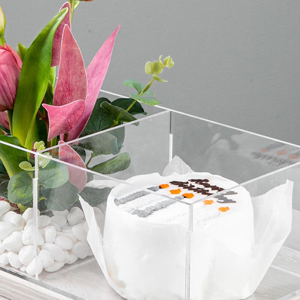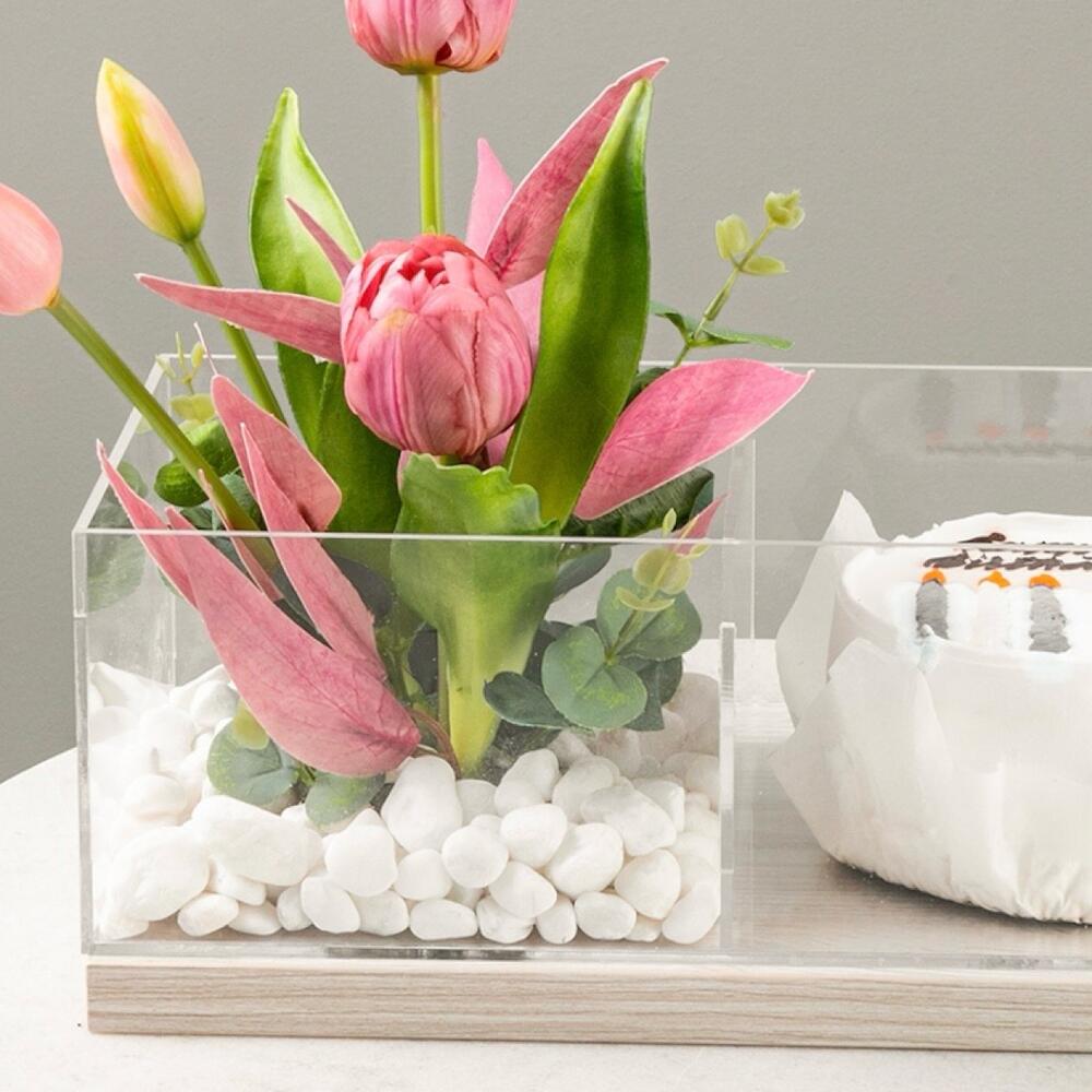Насладитесь изысканной красотой нашего бенто-торта, элегантно оформленного с искусственными тюльпанами, размещёнными в стильном акриловом лотке Blooms. Каждый торт, оживлённый мягким очарованием тюльпанов, можно персонализировать, добавив любую надпись по вашему желанию. Гармония эстетики и превосходного вкуса делает этот бенто-торт идеальным угощением для любого праздника или продуманным подарком для ваших близких. Насладитесь изысканным мастерством и пусть каждый кусочек рассказывает сладкую историю его создания!