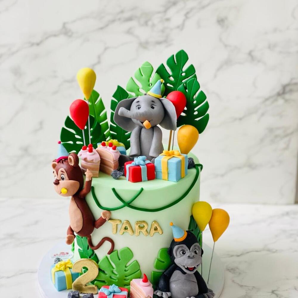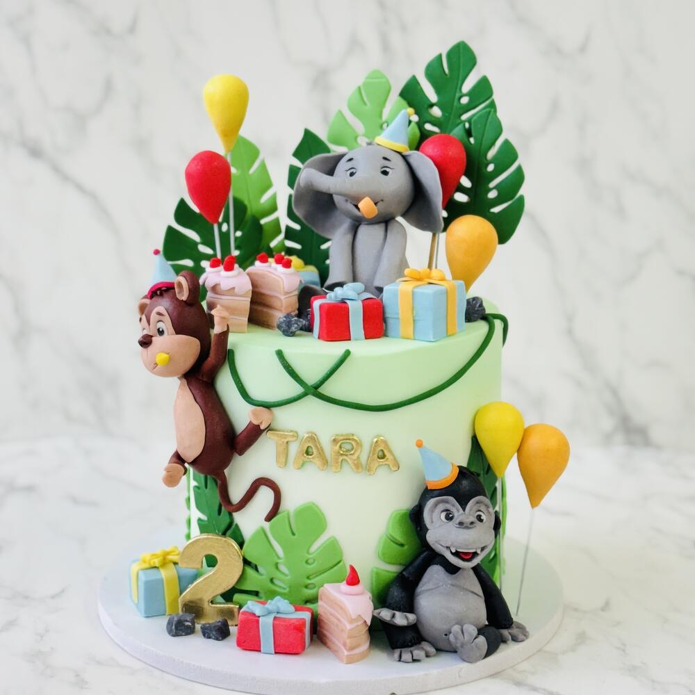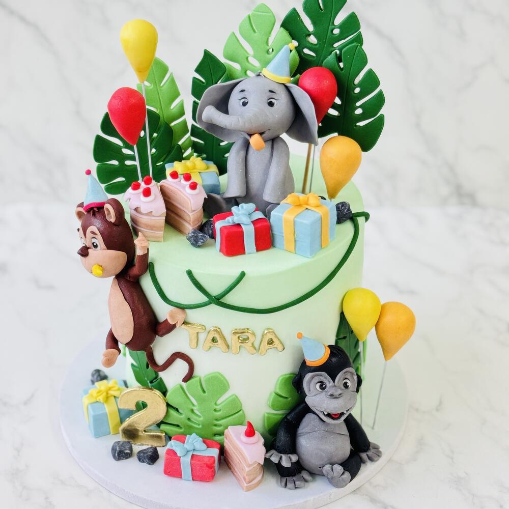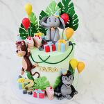 Jungle cake with 4pcs 3D topper Animals edible sugar decoration good for kids party with jungle theme