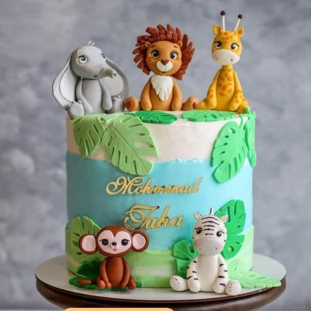 Это торт в лесной тематике. Животные сделаны вручную из сахарной мастики, чтобы дети могли играть с ними и понемногу их покусывать. Это шоколадная основа. Слои заполнены шоколадным кремом и шоколадными чипсами для хруста. Детям нравится и тема, и сам торт.