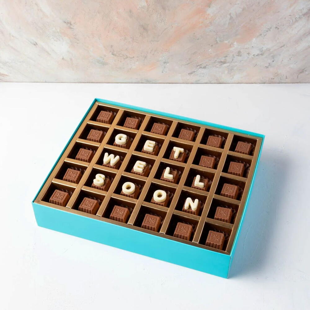 ВАШ ПОДАРОК СОДЕРЖИТ Примерно 500 г чистого бельгийского молочного шоколада Текст: 6 / 12 букв, по 6 букв в каждой строке Вкусы: Чистый бельгийский молочный шоколад Размеры коробки: Д×Ш×В: 31×25.5×6 см ОБРАЩЕНИЕ И ХРАНЕНИЕ Беречь от прямого нагрева и солнечного света Все наши продукты изготавливаются по заказу, и мы рекомендуем хранить их в прохладном сухом месте ИЗГОТОВЛЕНО В ПОМЕЩЕНИИ, ГДЕ ИСПОЛЬЗУЮТСЯ ОРЕХИ
