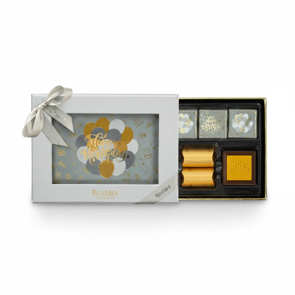 Отпразднуйте особый день любимого человека с помощью изысканной коробки Floriva Happy Birthday Box – поистине элегантного и восхитительного подарка. Эта роскошная двухслойная серебряная коробка, очаровательное творение от Floriva, весит 242 г и красиво перевязана элегантной серебряной атласной лентой. Трогательная фраза «С днем рождения» украшает как коробку, так и восхитительные шоколадные конфеты внутри, создавая праздничную атмосферу. Каждая из 16 конфет премиум-класса тщательно завернута в мягкую, праздничную фольгу с рисунком воздушных шаров, что усиливает ощущение торжества. Насладитесь соблазнительным ассортиментом печенья, хрустящих орехов и насыщенного печенья с карамельным вкусом – выбор, который обещает удовлетворить любой вкус. Исключительное качество и продуманная презентация – отличительные черты продукции Floriva, гарантирующие незабываемые впечатления от распаковки. Коробка Floriva Happy Birthday Box – это больше, чем просто угощение; это идеальный жест привязанности и праздника. Это идеальный способ передать свои наилучшие пожелания и сделать день рождения по-настоящему особенным. Выберите Floriva для подарка, сочетающего в себе роскошь, изысканный вкус и искренние чувства. Сделайте их день незабываемым с этой чудесной коллекцией шоколада от Floriva.