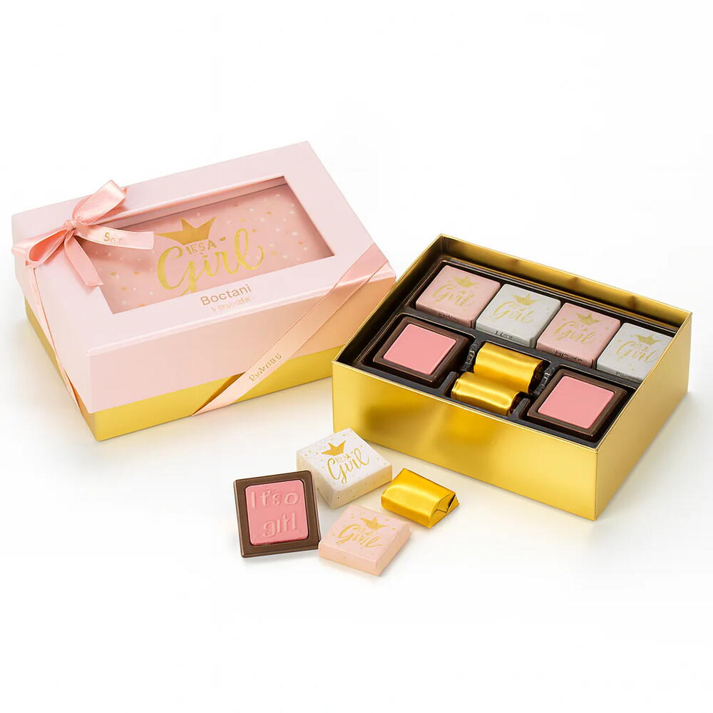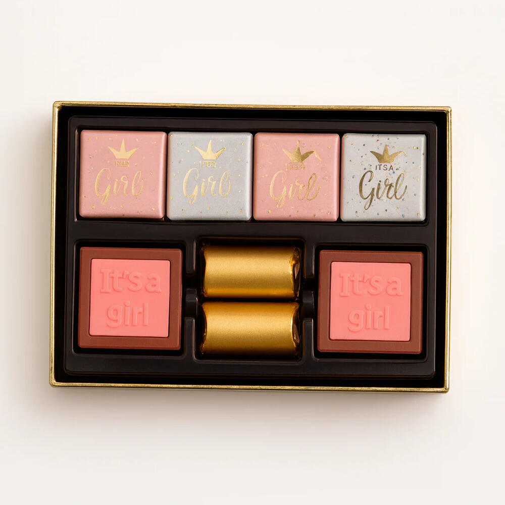 Встречайте появление на свет прекрасной девочки с роскошным подарочным набором шоколадных конфет «It’s a Girl Box» от Floriva — элегантным набором из 16 конфет, созданным для трогательных торжеств. Эта изысканная двухслойная розовая коробка весом 242 г перевязана мягкой атласной лентой и украшена фирменным мотивом «It’s a Girl» как на упаковке, так и на самих конфетах. Каждая конфета внутри набора «It’s a Girl Box» упакована в нежную, тематическую фольгу, что подчеркивает очарование этого премиального подарка для новорожденной. В набор входят 16 восхитительных конфет со вкусом печенья, орехов и печенья с карамелью — идеально подходящих для того, чтобы поделиться ими с семьей и друзьями во время вечеринки в честь будущего ребенка, посещения роддома или подарить их непосредственно новоиспеченным родителям. Набор «It’s a Girl Box» от Floriva сочетает в себе роскошную презентацию и восхитительный вкус, что делает его идеальным выбором для тех, кто хочет элегантно и стильно отметить появление на свет драгоценной девочки.