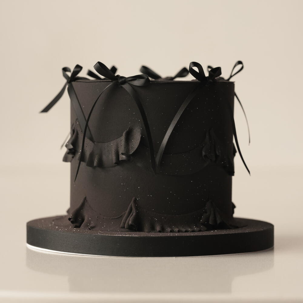 Our M cakes weighing 2.5 kg are designed for 9-10 people. The cake is adorned with delicate ganache ruffles with non-edible bows. Box size: 30*30*34cm