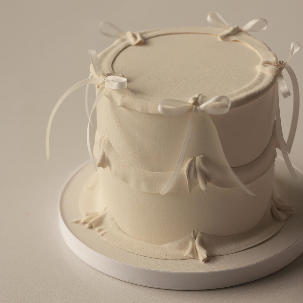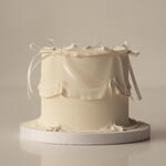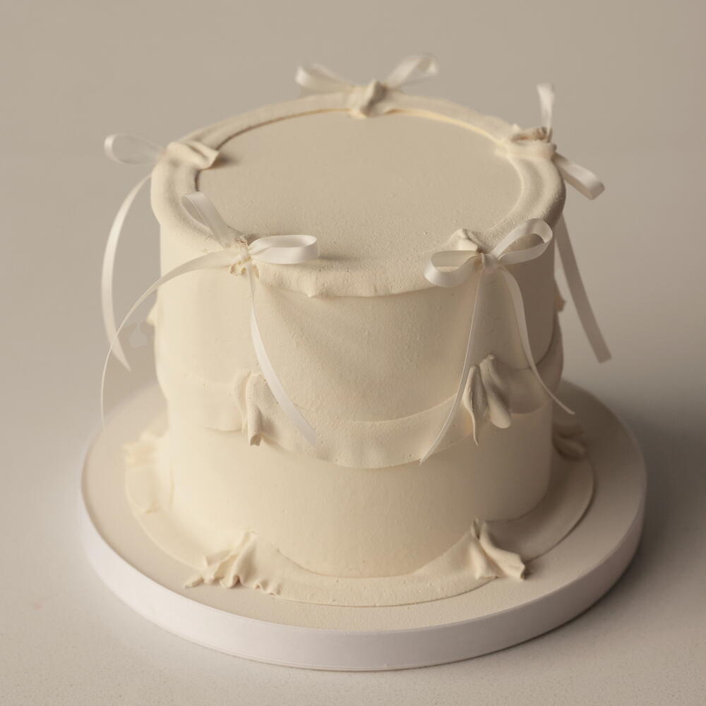 Our M cakes weighing 2.5 kg are designed for 9-10 people. The cake is adorned with delicate ganache ruffles with non-edible bows. Box size: 30*30*34cm
