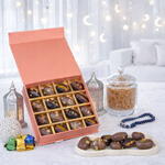 Побалуйте себя богатством Рамадана с этим роскошным ассортиментом премиальных фиников, фаршированных и покрытых шоколадом, элегантно представленным в коралловой подарочной коробке с золотыми перегородками. Каждый финик тщательно отбирается за естественную сладость и мягкую текстуру, затем щедро фаршируется жареным миндалём и смесью сухих орехов или окунается в гладкий молочный шоколад. Покрытые нежной хрустящей ореховой корочкой и созданные для идеального баланса сладости и насыщенности, каждый кусочек предлагает утонченное сочетание карамельных нот, кремового шоколада и ореховой глубины. Идеальна для ифтарных столов, душевных подарков и изысканных корпоративных наборов, эта коллекция передаёт истинную сущность праздничного наслаждения Рамадана. Вечное лакомство, созданное для того, чтобы делиться моментами благословения и празднования.