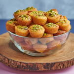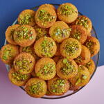 Специальная басбуса с кардамоном и шафраном, сверху — смесь орехов. Содержит орехи, глютен и молочные продукты. (44 шт.)