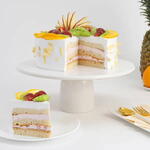 Торт на день рождения с кремом и смешанными фруктами без яиц