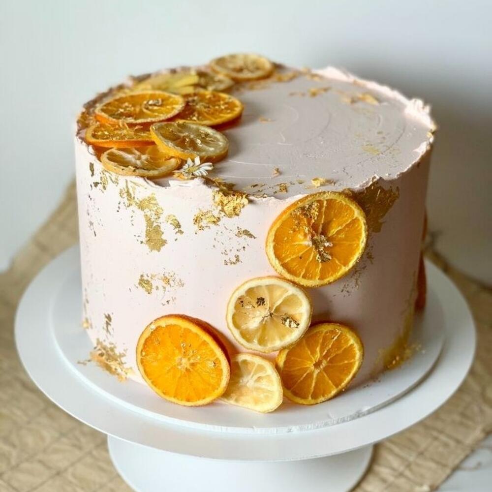 Апельсиновый торт с украшением из апельсина и лимона