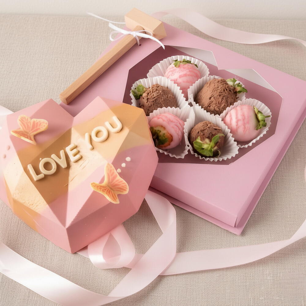 Раскройте сердце, наполненное сладостью. Этот изысканный набор включает в себя шоколадную пиньяту ручной работы и изысканную клубнику в шоколаде — идеальный подарок-сюрприз.