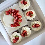 Это влажный и воздушный ванильный бисквит. В прослойках мы используем сгущённое молоко, кокосовую стружку и шоколадную крошку, чтобы сделать торт ещё вкуснее. Клубника используется в качестве топпинга, чтобы сделать торт ещё красивее.