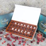 Информация о продукте: Бренд: Sweecho, Текст: Ramadan Kareem, Тип: Молочный шоколад, Количество: 32 шт., Мраморные шоколадные буквы, Разные вкусы: Фисташки, Чизкейк, Лотос, Фундук, Кофе, Кукурузные хлопья и Смесь орехов, Аллергены: Орехи и молоко, Упаковано в красивую подарочную коробку Рамадана.