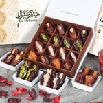 Описание товара:-Ассорти фиников с начинкой, Вкусы - фисташка, апельсиновая цедра, кешью и фундук, Количество - 16 шт., Упаковано в красивую подарочную коробку к Рамадану