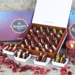 Информация о продукте: ассорти из фаршированных фиников со вкусами: фисташки, апельсиновая цедра, кешью, грецкий орех и фундук. Количество: 25 шт., упаковано в красивую подарочную коробку к Рамадану.
