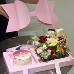 Write to us what filling and what design you would like for the cake. The composition of the flowers may differ from the photo.