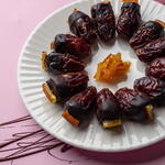 Почувствуйте волшебство наших фаршированных фиников – они словно кусочки счастья. 6 вкусов, все из натуральных ингредиентов. Идеально подходит для подарка на любой случай: день рождения, годовщина, выпускной, День матери, Международный женский день или просто чтобы поприветствовать гостей в эмиратском стиле. ТРЮФЕЛЬНЫЙ ФИНИК Финик медждуль, фаршированный темным шоколадом и фундучной пастой. ИЗУМРУДНЫЙ Финик медждуль, фаршированный кремом из фисташек и белого шоколада. СЛАДКАЯ КОЖУРА Финик медждуль, фаршированный миндальной пастой и апельсиновыми цукатами. БЕЛОСНЕЖКА Финик медждуль, фаршированный кокосом и белым шоколадом. ЗОЛОТОЙ ЧАС Финик медждуль, фаршированный абрикосовой, лимонной и миндальной пастой. РОЗА ПУСТЫНИ Финик медждуль, фаршированный миндальной и ореховой пастой со вкусом розовой воды.