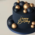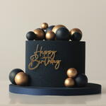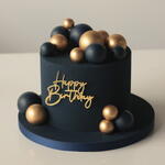 Our M cakes weighing 2.5 kg are designed for 9-10 people. The cake is covered in velvet, adorned with chocolate spheres and a golden “Happy Birthday” topper. Box size: 30*30*34cm
