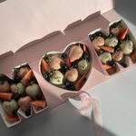 Chocolate-covered strawberries, fresh berries in a box for mom