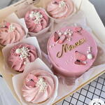Это шоколадный торт. В слоях мы добавляем премиальные шоколадные чипсы, карамелизированные орехи, свежие клубничные шоколадные чипсы, миндаль, сгущённое молоко. Оформлен в любовной тематике, чтобы подарить кому-то особенному, с капкейком.
