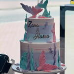 Этот волшебный двухъярусный торт перенесет вас в прекрасное, безмятежное подводное царство, идеально подходящее для вечеринки в честь рождения ребенка или детского праздника, посвященного русалкам. Конструкция: Великолепный двухъярусный торт с великолепным, мягким акварельным или аэрографическим эффектом омбре на обоих ярусах, сочетающим мечтательные пастельные оттенки сиреневого/лавандового, бледно-голубого/мятно-зеленого и нежно-розового. Тематическая направленность: Тематика – подводное царство с потрясающими элементами русалок и океана. Акценты русалочьего настроения: Торт щедро украшен объемными фигурками ручной работы из мастики, включая большие, искусно детализированные хвосты русалок контрастных пастельно-розовых и мятно-зеленых оттенков. Эти хвосты расположены так, что кажется, будто они вырастают из верхней части и боков торта. Морская жизнь: Ярусы украшены небольшими реалистичными аппликациями в виде морских существ, таких как морские коньки, ракушки и морские звезды, выполненными в соответствующих пастельных тонах. Высокие, извилистые элементы из мастики имитируют водоросли или кораллы, добавляя глубину и текстуру подводному пейзажу. Персонализация: На лицевой стороне верхнего яруса элегантно, плавно, металлизированным золотом написаны имена (например, на фотографии — Зара Хасна), что делает этот торт идеальным для двух человек. Этот торт можно персонализировать, выбрав цвет и имя, и он гарантированно станет гвоздем программы любого праздника!