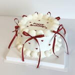Неподвластная времени романтика. Наш торт весом 500 г воплощает классическую элегантность ушедшей эпохи. Белоснежная основа из ванильного крема обрамлена щедро выложенными кремом бордюрами в виде ракушек и украшена нежными, струящимися малиновыми атласными лентами, завязанными бантиками. Украшенный крошечными красными сердечками и надписью «С днем рождения!», он станет идеальным украшением для дня рождения, девичника или любого другого торжества, требующего красивого винтажного стиля.