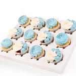 Изысканный ассортимент насыщенных, влажных капкейков, покрытых шелковистой голубой и кремовой глазурью с нежными жемчужными акцентами. Мягкие, успокаивающие и продуманно оформленные—идеально подходят для нежных праздников и искренних подарков.
