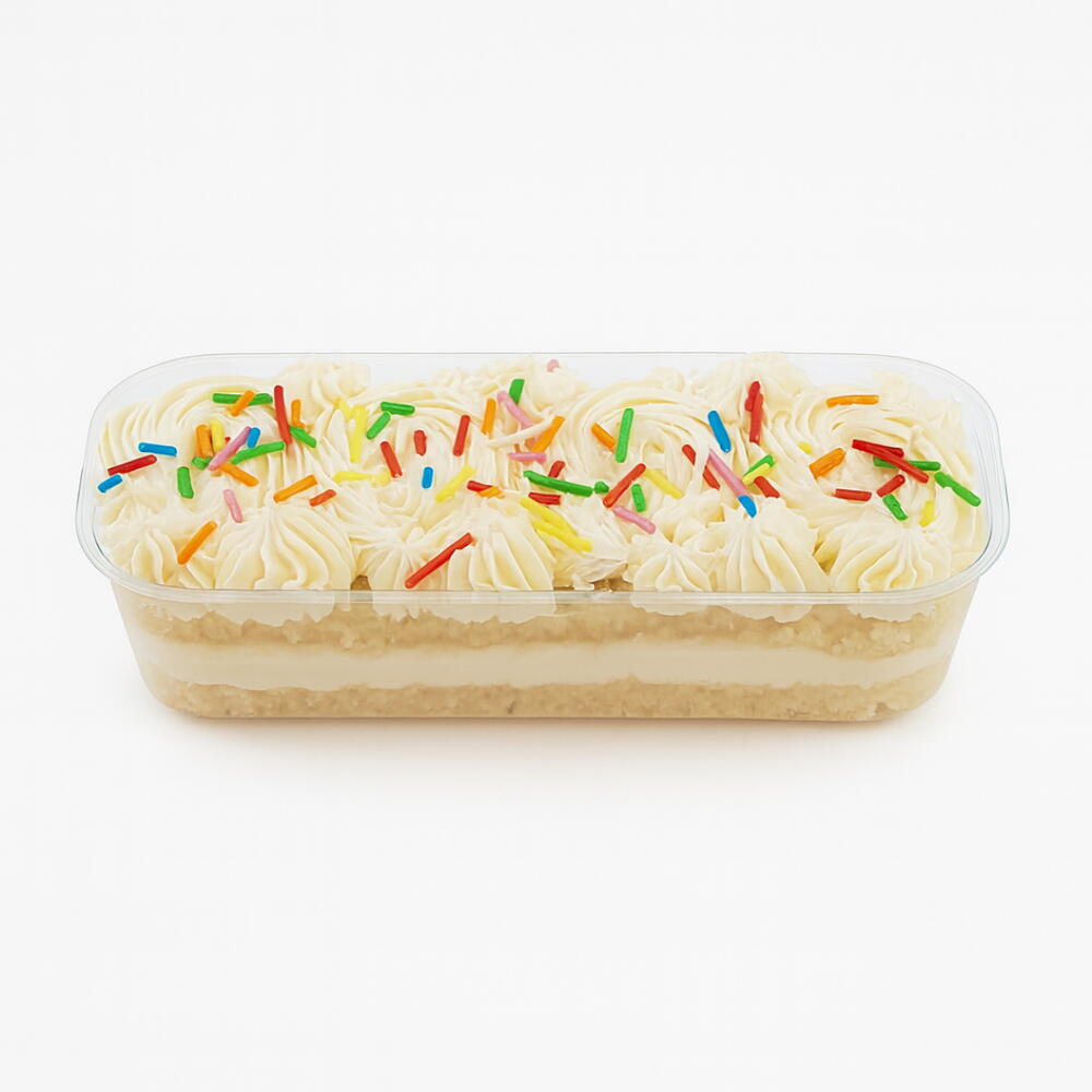 Классический ванильный бисквит с божественной начинкой из масляного крема, сверху посыпан разноцветной посыпкой