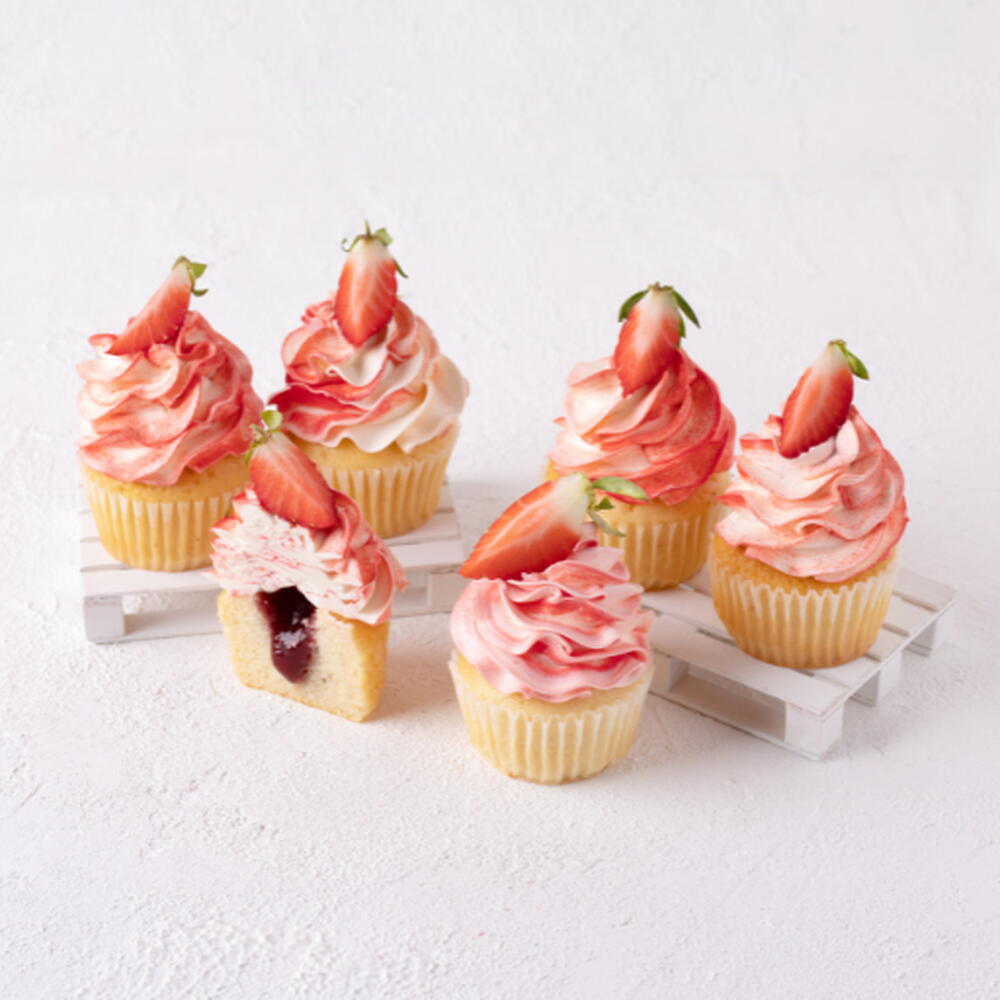 Мы превратили любимое всеми лакомство в маленькие кусочки, чтобы вы могли с лёгкостью наслаждаться ими! Наши капкейки Victoria Sponge — это воздушные ванильные кексы, наполненные клубничным джемом и покрытые масляным кремом и свежей клубникой.