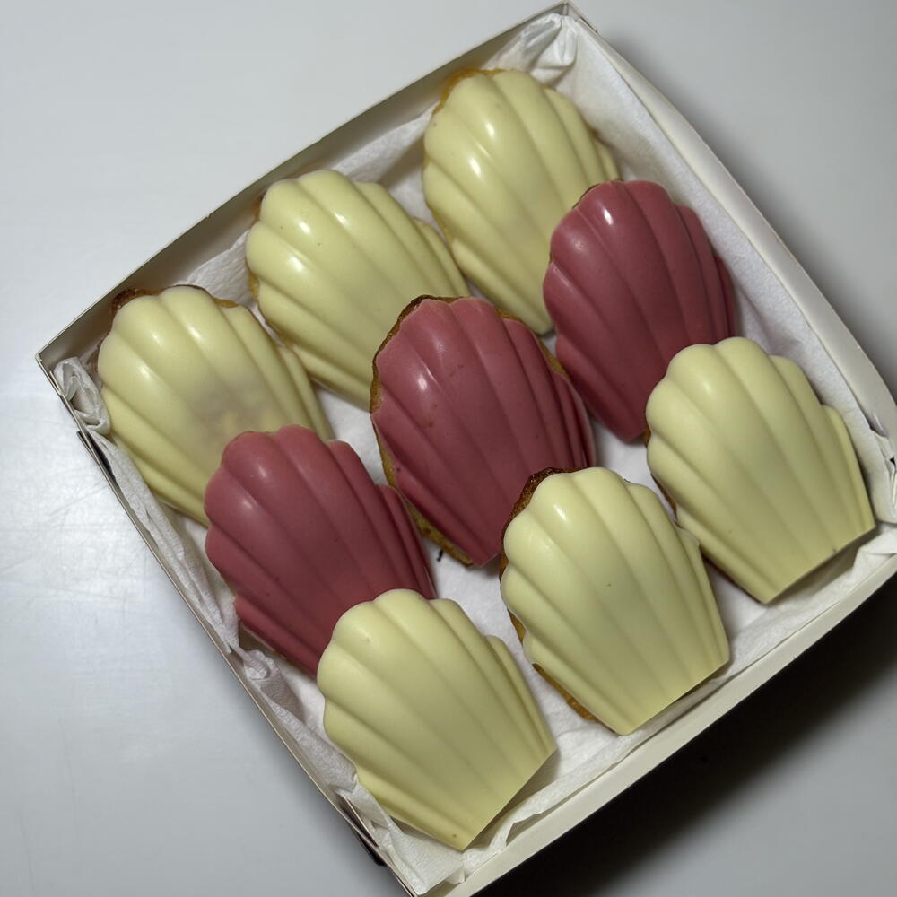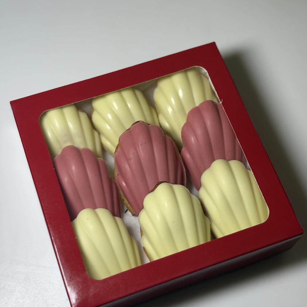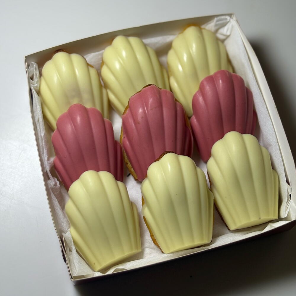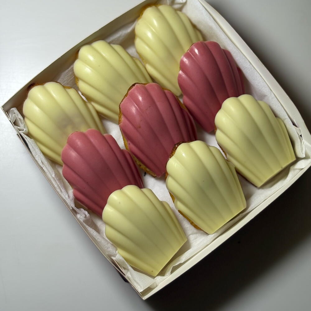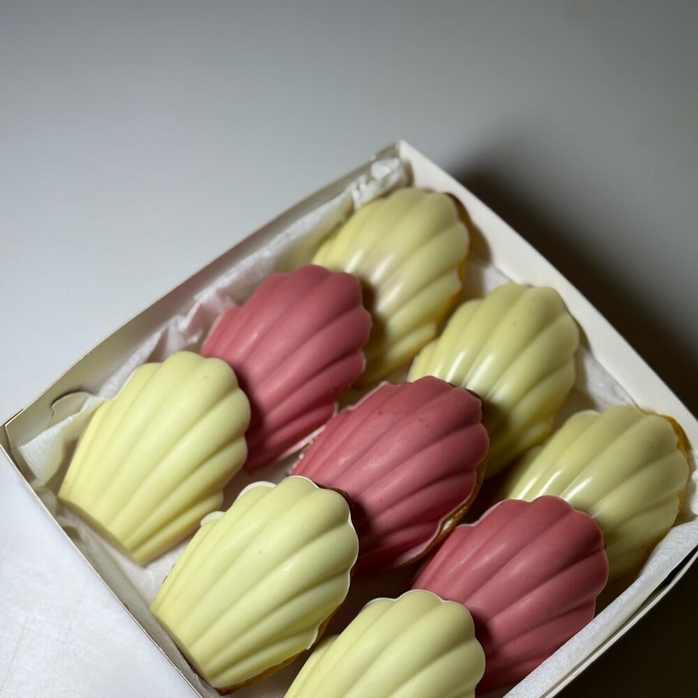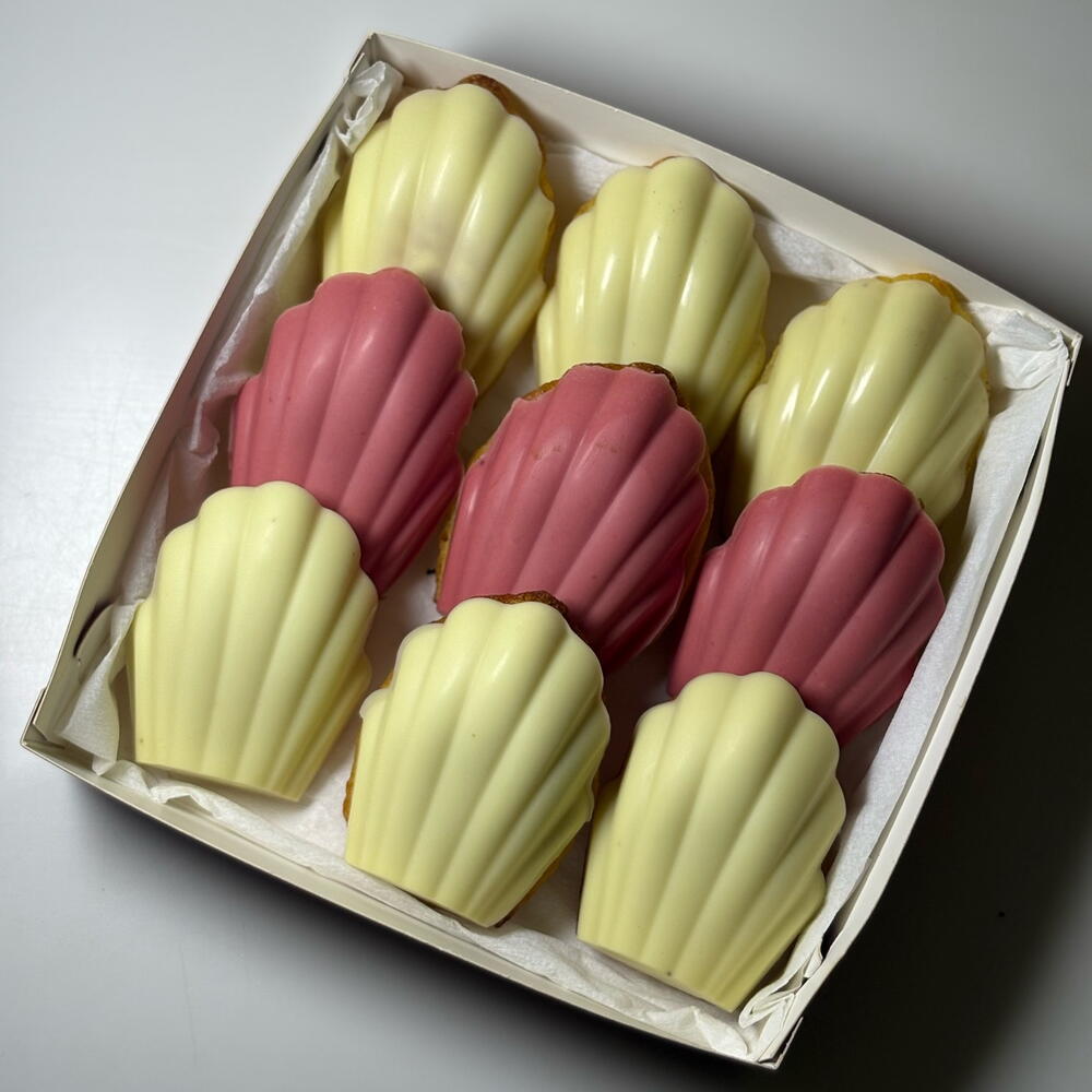 Побалуйте себя или кого‑то особенного нашими мадленками с клубнично‑ванильным шоколадным покрытием, красиво уложенными в элегантную подарочную коробку. Каждая мадленка свежеиспечённая, мягкая, маслянистая и покрыта премиальным белым ванильным шоколадом и рубиновым шоколадом со вкусом клубники. Благодаря пастельным оттенкам и шелковистой текстуре эти мадленки — отличный выбор для дней рождения, праздников или в качестве стильного подарка.