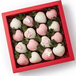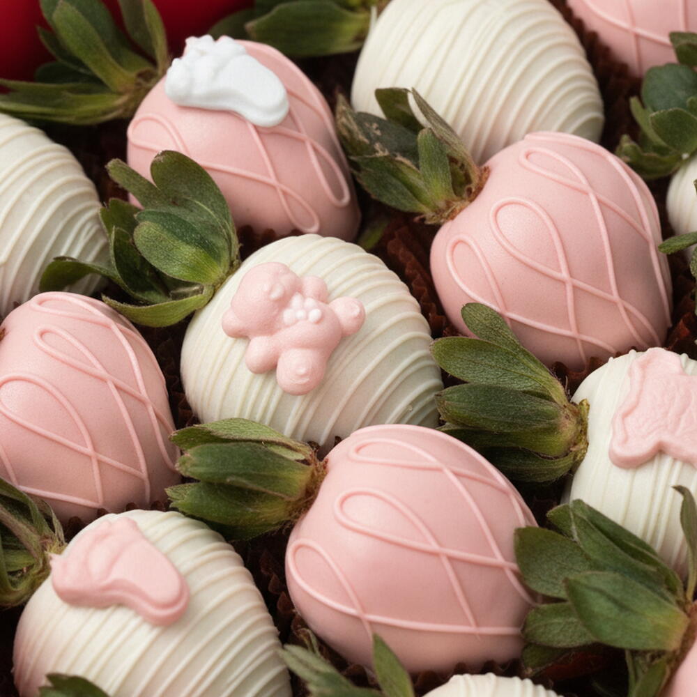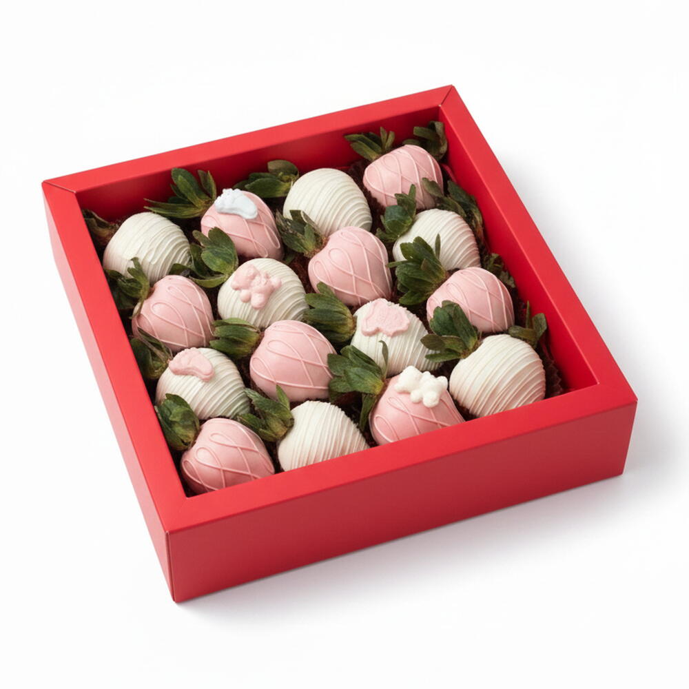 Сладкая и элегантная коробка клубники, вручную окунутой в бельгийский белый шоколад и в нежно-розовый шоколад, украшенная изящными шоколадными деталями на детскую тематику. Прекрасный подарок, чтобы отпраздновать рождение девочки.
