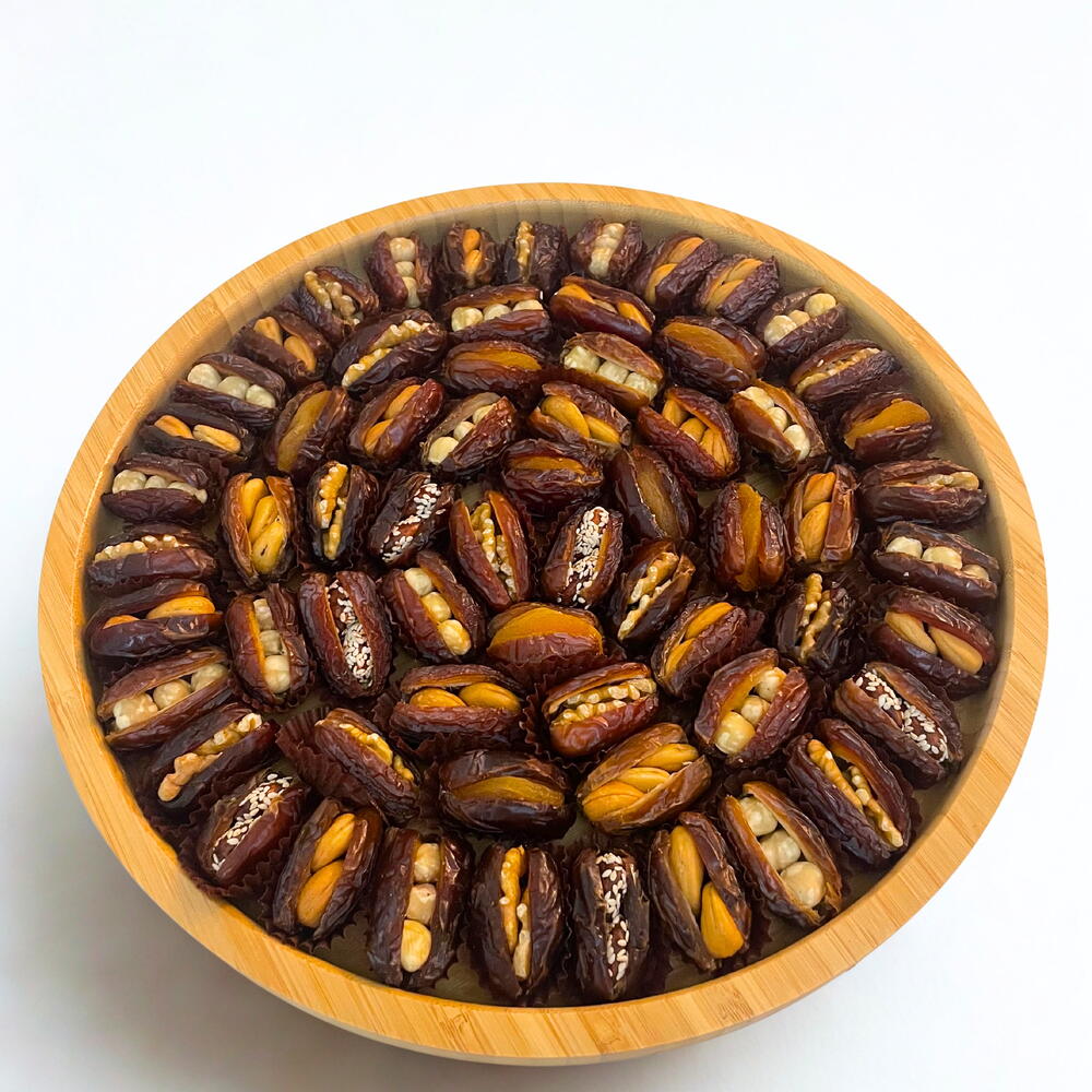 Деревянный поднос - 1 кг премиумных фиников, фаршированных орехами