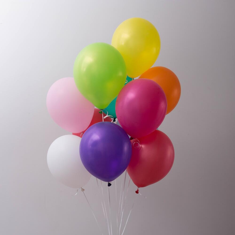 11 штук разноцветных воздушных шаров, наполненных гелием, с грузиком