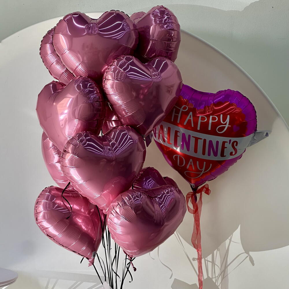 11 розовых сердец 1 большая валентинка