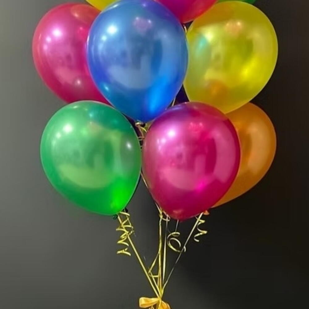 15 шт. разноцветных шаров с гелием Время полёта будет 6-8 часов, зависит от температуры