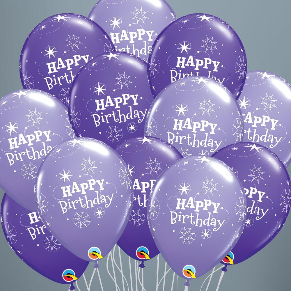 15 штук высококачественных фиолетовых воздушных шаров с блёстками на день рождения американского бренда, наполненных гелием, с грузиком внизу. Гелий продержится 6–8 часов