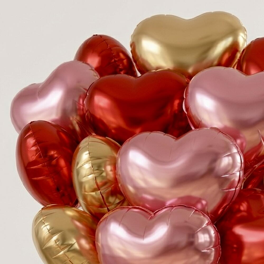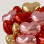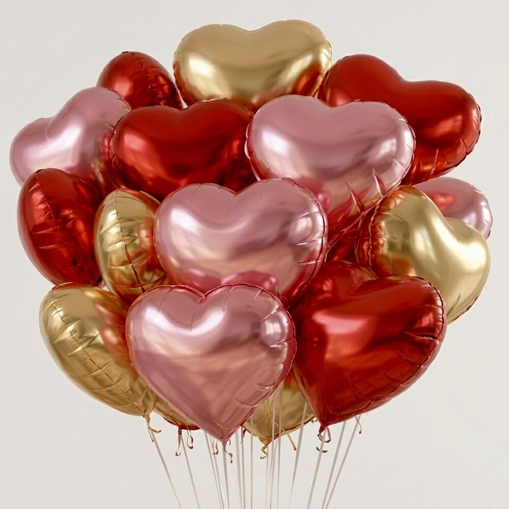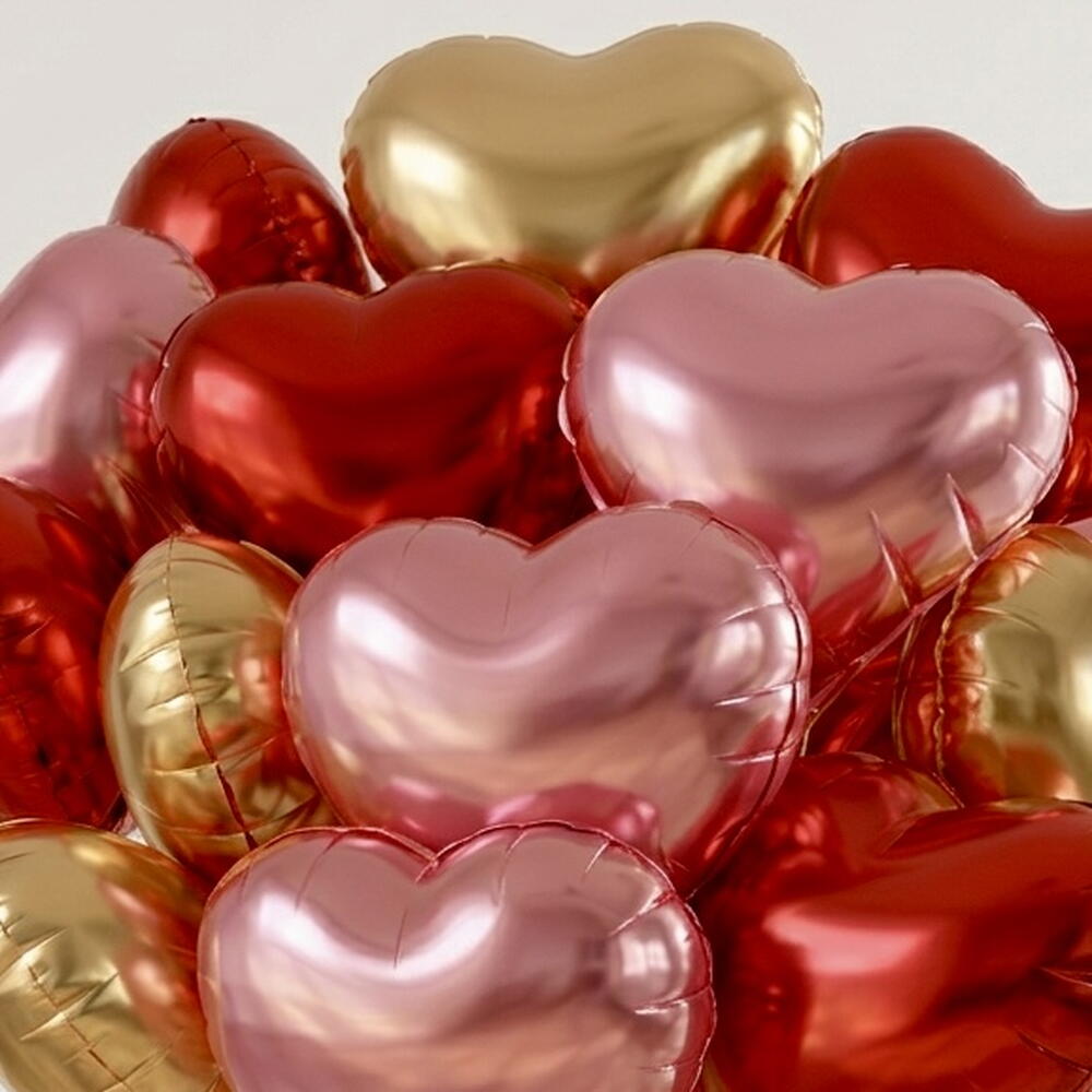 15 красных, золотых и розовых фольгированных воздушных шаров в форме сердца | Набор праздничных воздушных шаров с гелием