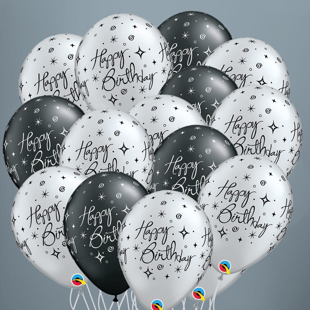 15 Silver And Black Sparkle Birthday Balloons-1572
