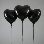 3 черных фольгированных шара в форме сердца – 18 дюймов | Набор, наполненный гелием