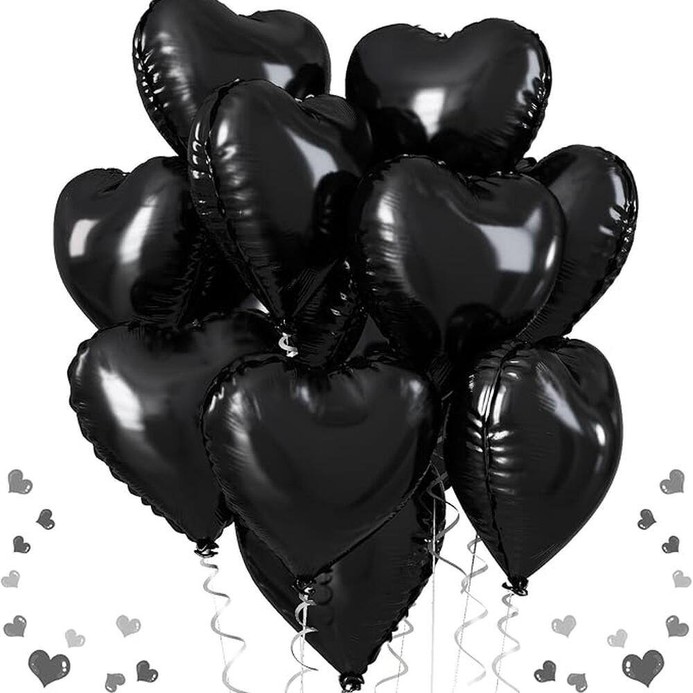 Набор из 9 чёрных фольгированных гелиевых шаров в форме сердца 6225