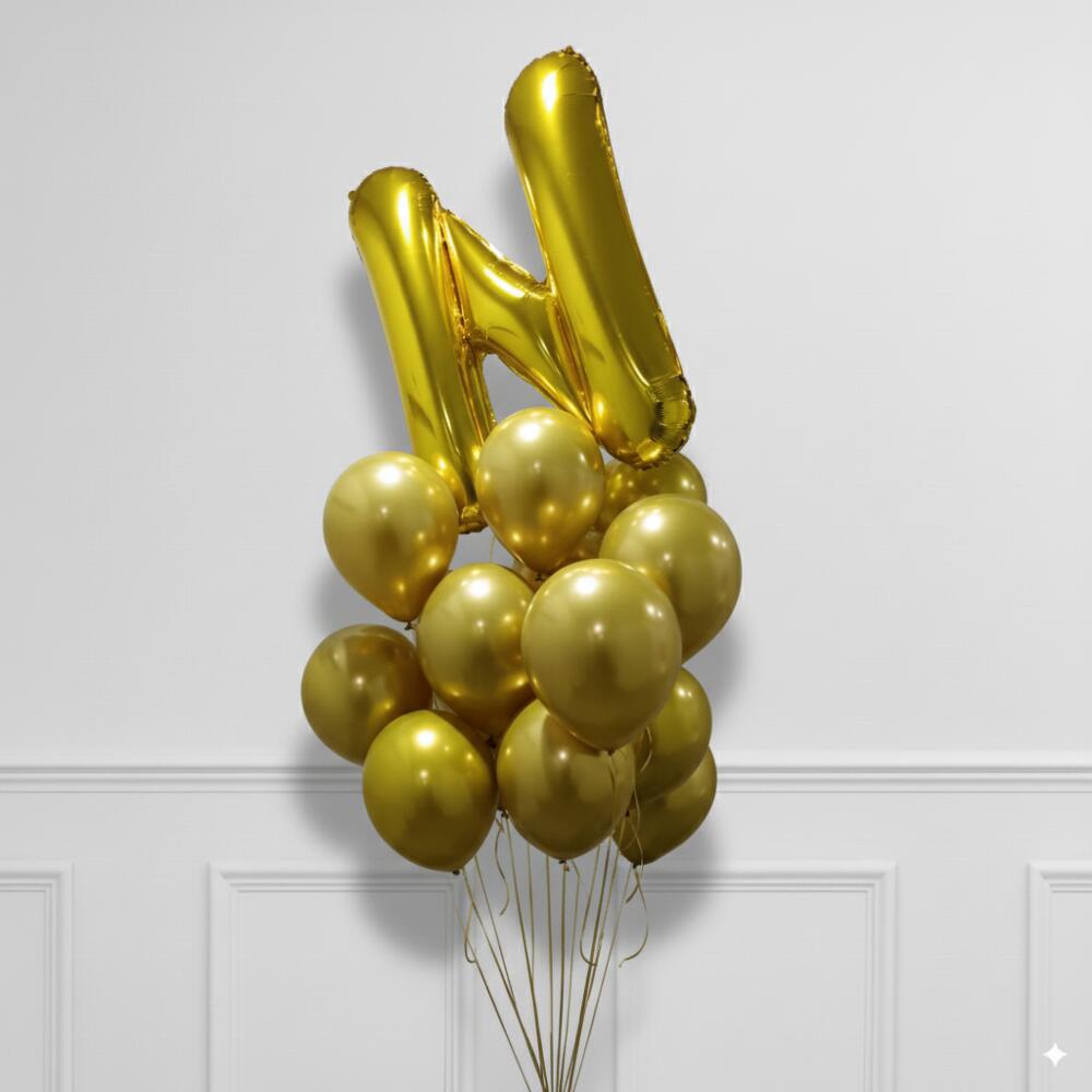 Набор из 15 золотых шаров с одной буквой N
