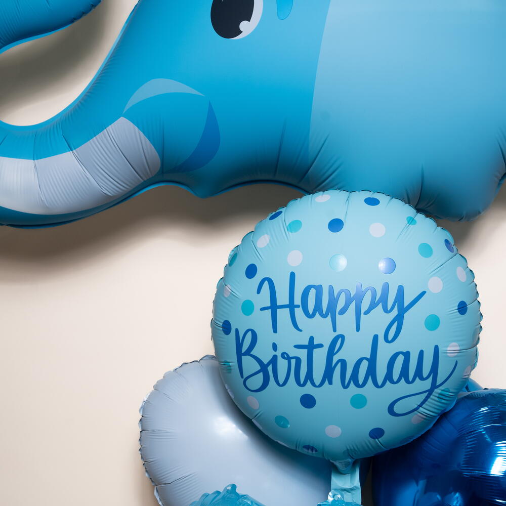 Набор из 5 фольгированных воздушных шаров «С днем рождения» в синей тематике «С днем рождения» Этот набор фольгированных воздушных шаров «С днем рождения» в синей тематике добавит милого и радостного настроения любому празднованию дня рождения. В набор входят 1 большой фольгированный шар в виде слоненка синего цвета, 1 круглый фольгированный шар с надписью «С днем рождения» и 3 фольгированных шара в форме сердца в синих тонах для создания нежного и очаровательного образа. Идеально подходит для детских дней рождения, детских вечеринок, украшения комнаты и фотосессий. Этот набор из 5 фольгированных шаров создает сладкую и праздничную атмосферу, а время полета в воздухе под гелием составляет приблизительно 8–10 часов 🎈🐘