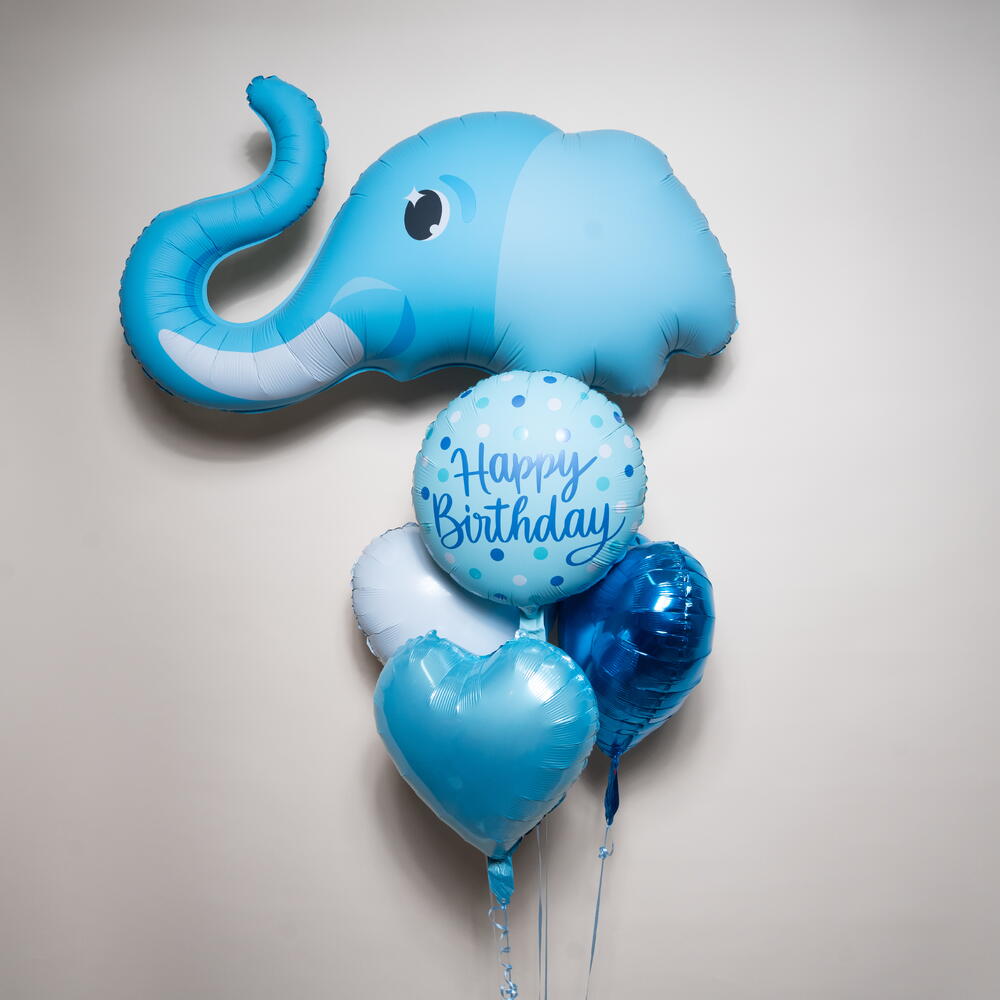 Набор фольгированных шаров Голубой слонёнок С Днём Рождения 7398
