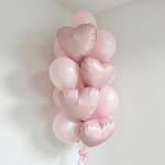Букет из нежно-розовых металлических шаров в форме сердца