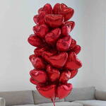 Cloud of 50 red foil heart balloons