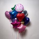Разноцветный набор фольгированных шаров «С Днём Рождения», сердце и звезда 7505
