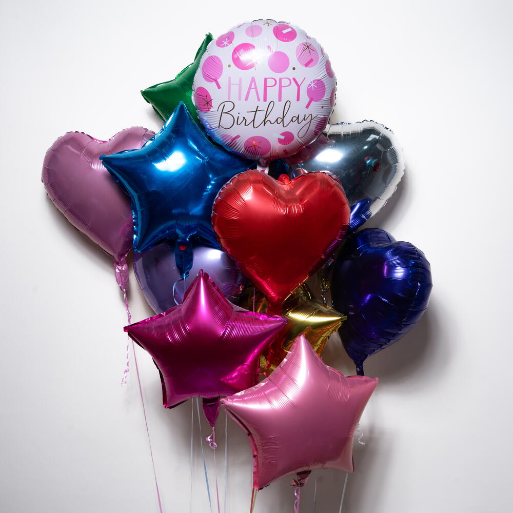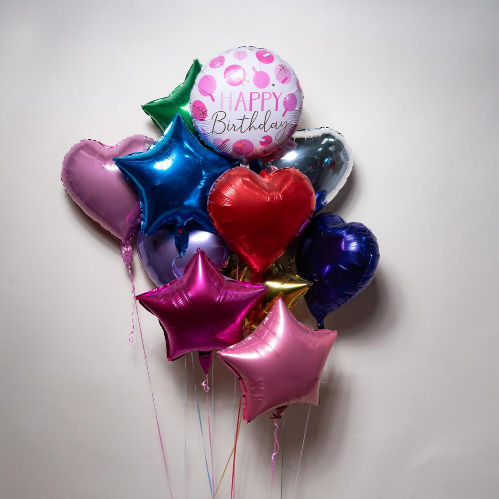 Отпразднуйте со стилем с этим ярким набором фольгированных шаров в форме сердца и звезды, созданным, чтобы мгновенно добавить радости и цвета любому празднованию дня рождения. Включая весёлое сочетание глянцевых шаров в форме звезды и сердца вместе с классическим шаром с надписью Happy Birthday, этот набор идеально подходит для украшения вечеринок, чтобы удивить близких или для эффектных фотомоментов. Что входит: 🎂 1 x фольгированный шар с надписью Happy Birthday ⭐ 5 x фольгированных шаров в форме звезды ❤️ 5 x фольгированных шаров в форме сердца Все шары наполнены гелием и оформлены для красивой парящей композиции. Время полёта на гелии: примерно 8–10 часов. Подходит для детских дней рождения, праздников для взрослых или для всех, кто любит яркие праздничные акценты.